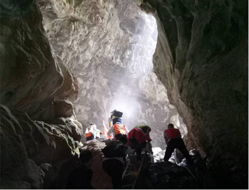 速降過后,進(jìn)入溶洞探險(xiǎn),這是一項(xiàng)勇者的運(yùn)動(dòng),穿行于錯(cuò)綜復(fù)雜的神秘地下世界,是對(duì)體力、耐力、技術(shù)和心理素質(zhì)的極大考驗(yàn),隊(duì)員們打開各自手電筒,相互協(xié)助,沿著溪水,往深黑的洞穴慢慢探索。